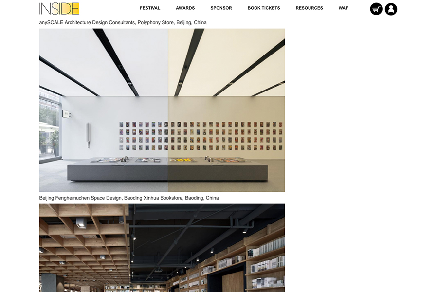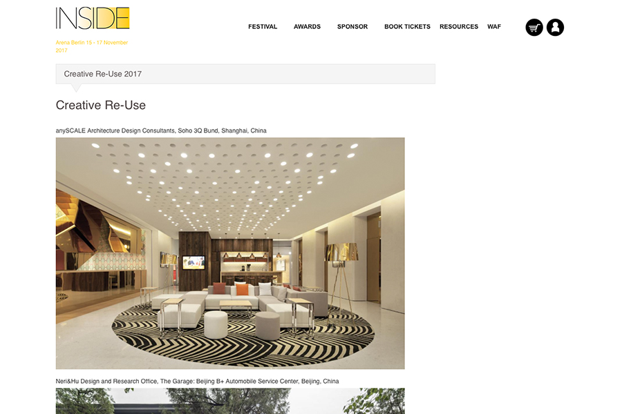 This year we are proud to announce that two of our projects, SOHO 3Q Bund in Shanghai (creative re-use) and the Polyphony store (retail) in Beijing have been shortlisted and are now up for consideration by the INSIDE Award's jury of the World Architecture Festival 2017 for the final prizes. Though we look forward to the jury's decision in November, the team is already grateful for the acknowledgment and further encouraged to continue the pursuit of excellence in pioneering modern design.