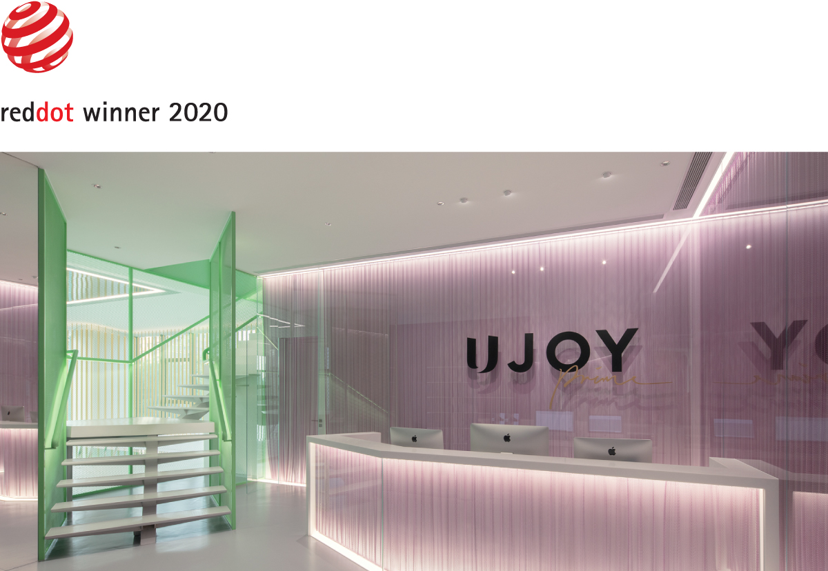A panel of roughly forty international design experts from various industries selected, among thousands of entries, the UJOY Prime project as an outstanding collaboration that met the requisite standards of quality, innovation, functionality, and aesthetics. The award represents both brands' hard work and commitment to not only upgrade the UJOY brand but to establish UJOY Prime as a supplement premium fitness brand that offers better equipment and services in a more beautiful space.