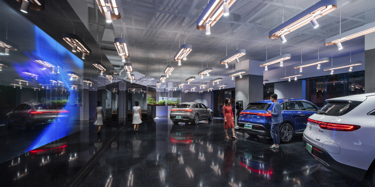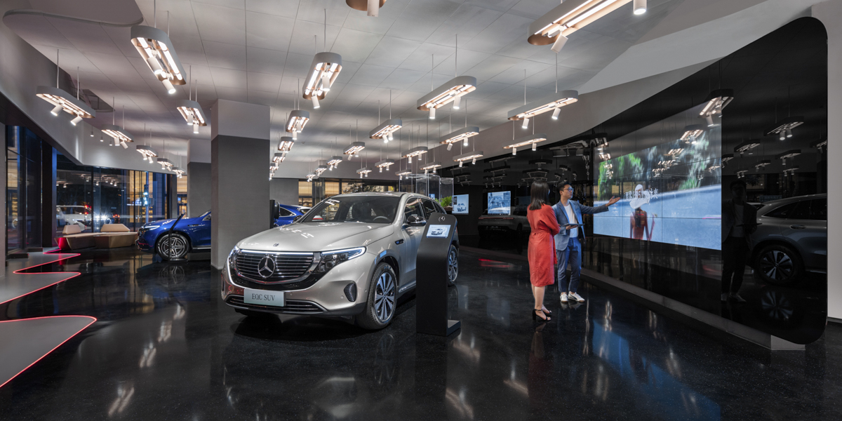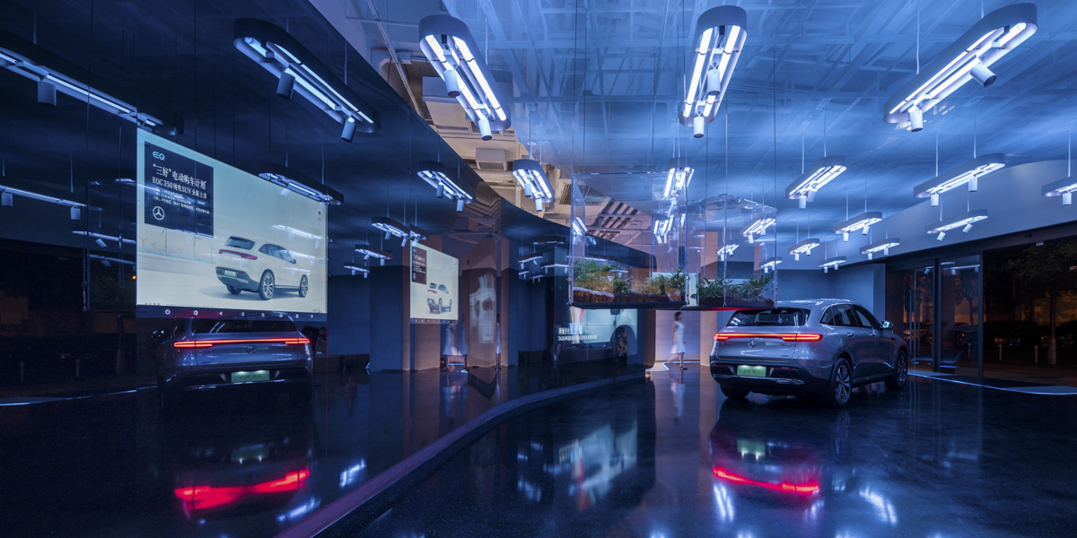 凭借创新十足的设计概念,anySCALE一举获得梅赛德斯-奔驰首批三家纯电动SUV系列展厅的室内设计任务 - the EQC。