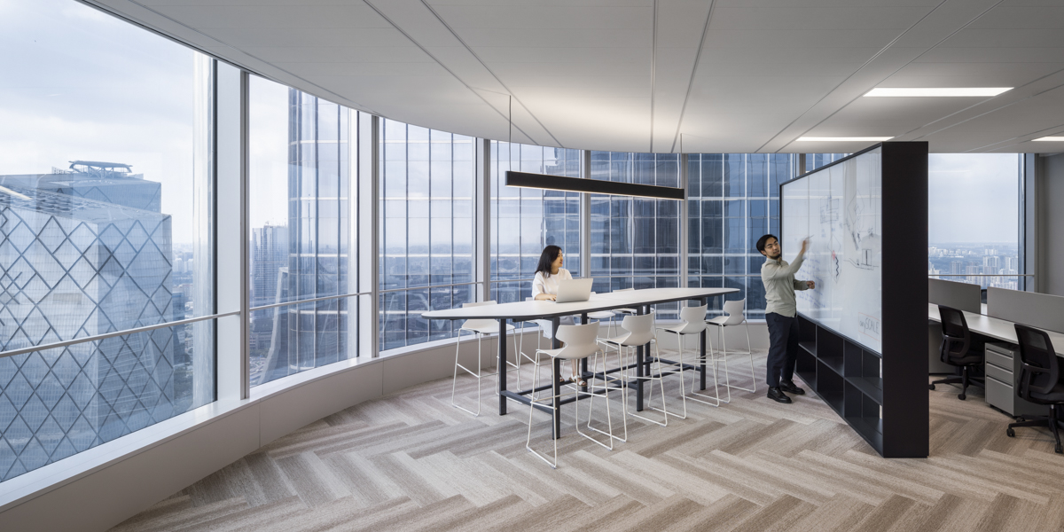 Developed by Thai conglomerate CP Group, Zhengda Center shares its premier location in Beijing's Chaoyang CBD with iconic landmarks such as the CCTV Tower, China World Trade Center, and Beijing CITIC Tower. Also known as the CP Center Twin Tower Complex, it consists of two 238-meter tall office towers, one of which serves as CP Group's main headquarters. anySCALE designed a tasteful, high-quality office for the entire 1,500 sqm net area of the North Tower's 39th floor.