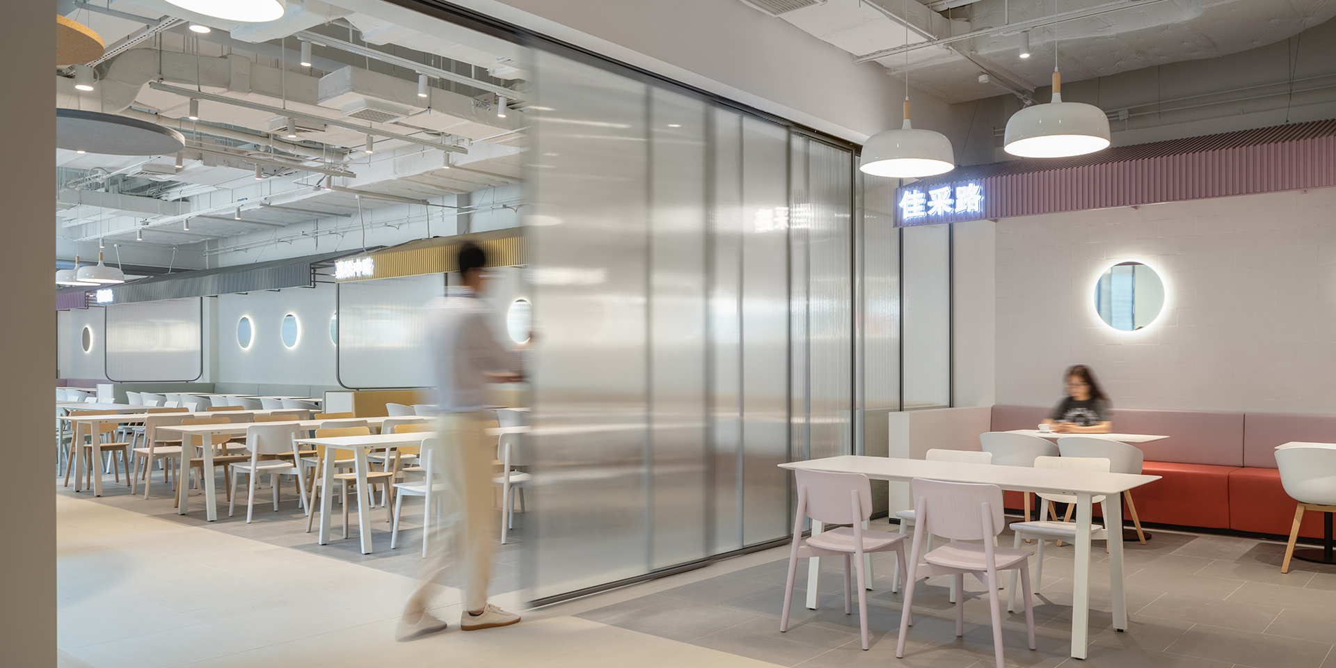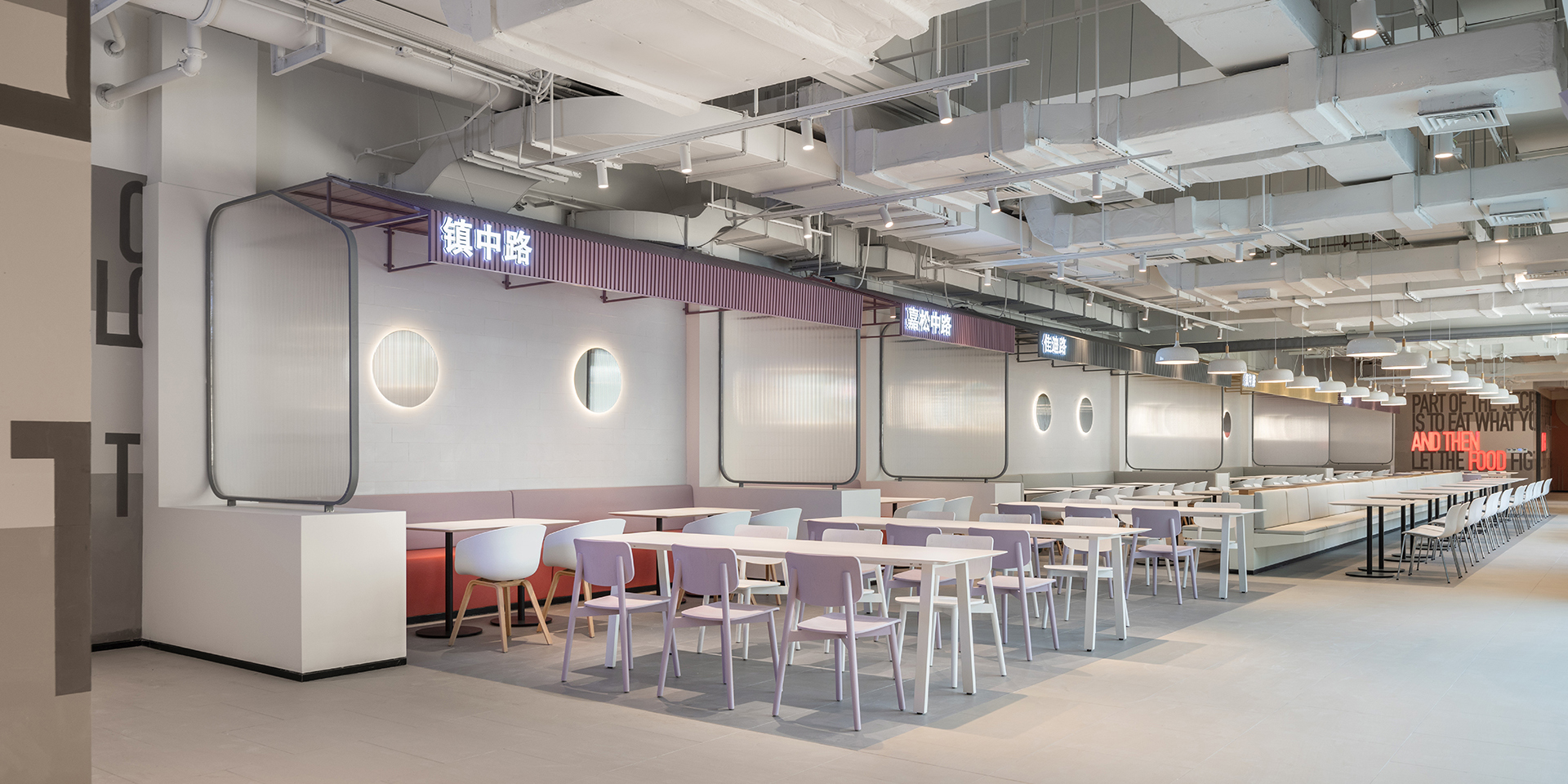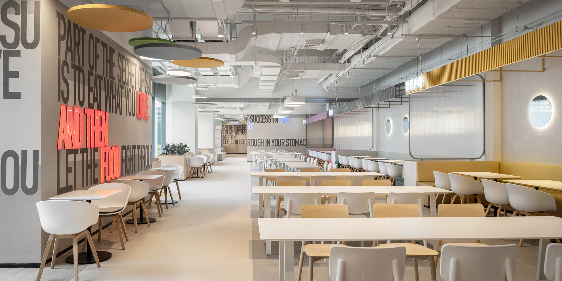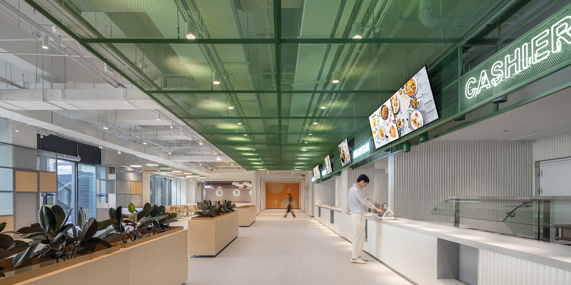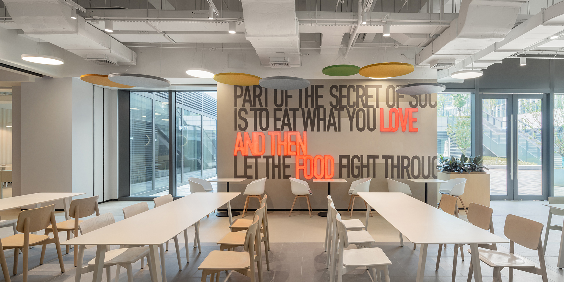 In alignment with the operator's dedication to promoting a sustainable lifestyle through wholesome nutrition, the environment is crafted using a refreshing color scheme dominated by vibrant fruit-inspired hues intermingled with white and off-white shades. Large-scale inspirational quotes, illuminated by LED lights, infuse a youthful and lively street café atmosphere into the otherwise utilitarian space.