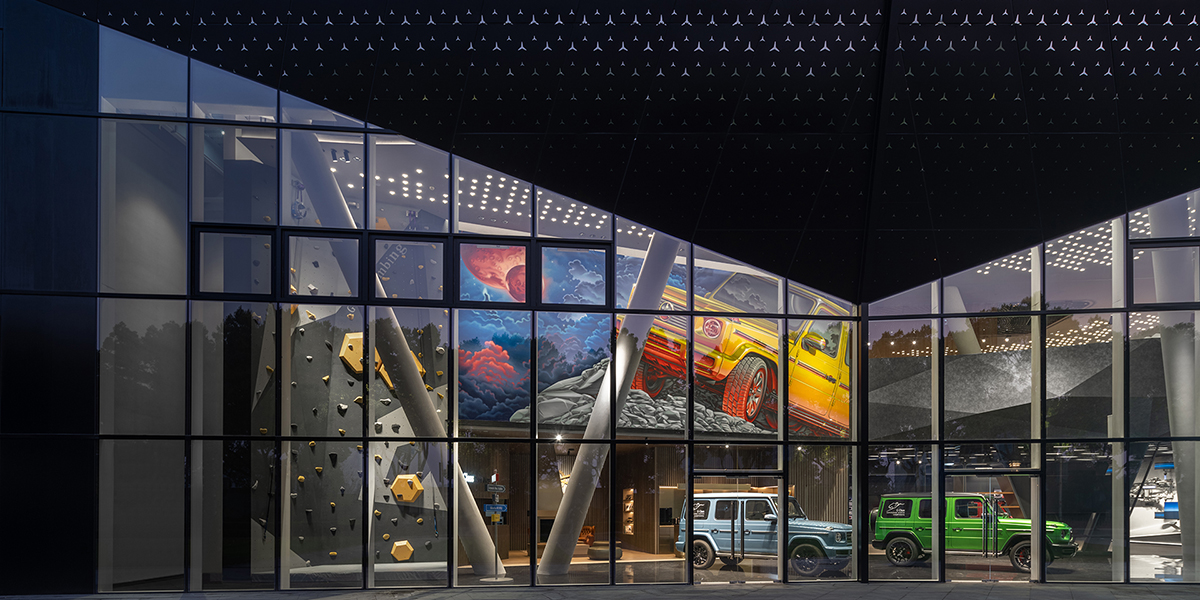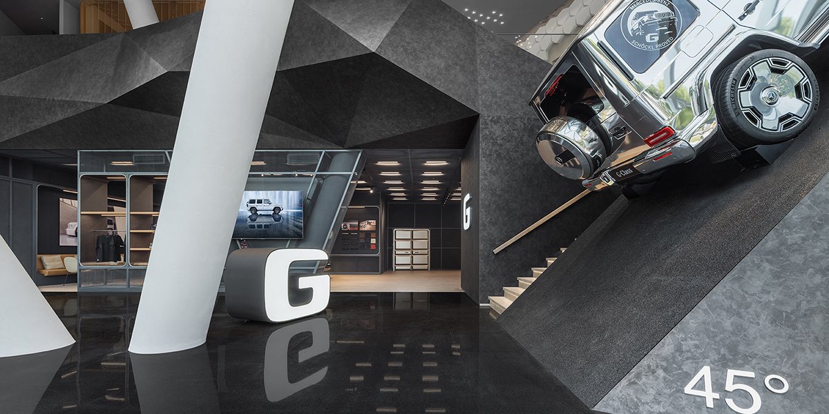 体验中心的设计理念融入了G级越野车的冒险精神和强悍性能,同时兼具高端奢华品牌的品质,与豪车市场定位相吻合。