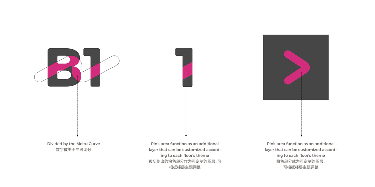 This signage system transforms the office from a purely functional environment into an experiential space that reflects Meitu’s product logic, embedding the idea of “art meeting technology” into every pause and point of orientation.