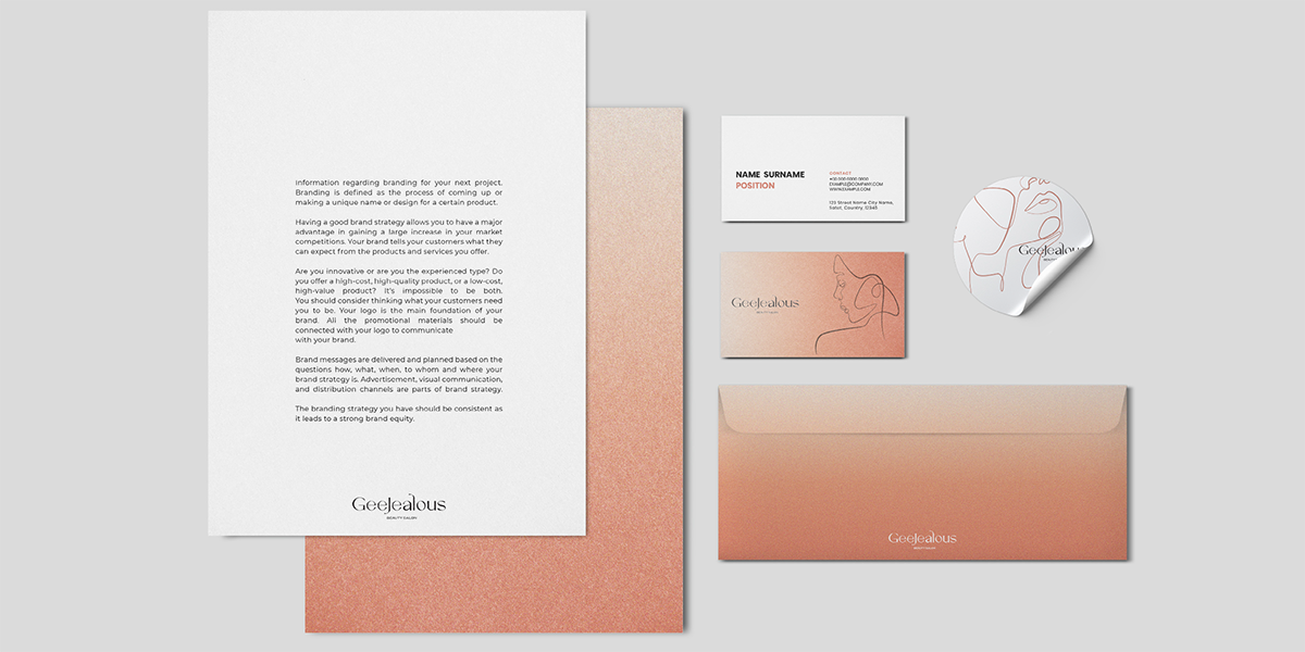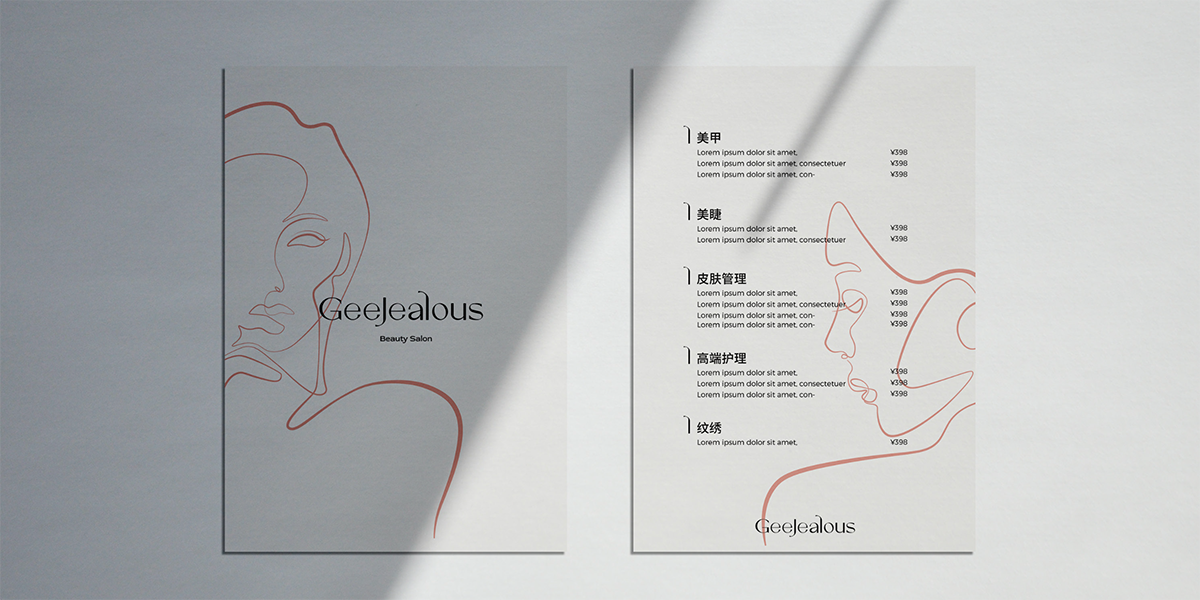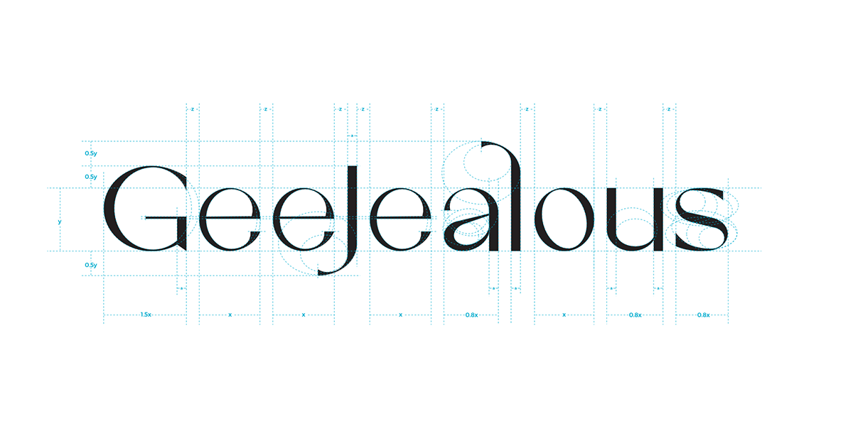 The GeeJealous logo is based on an elegant serif typeface, balancing softness and structure. Sculptural detailing at the terminals preserves fluid femininity within a rational framework. Inspired by refined urban women, the supporting graphic system features continuous-line female silhouettes. These flowing lines, like single-stroke sketches, reinforce the brand’s curved DNA.
