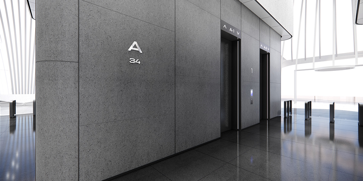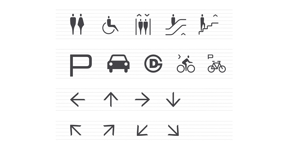 Signage scale was carefully aligned with architectural volume, maintaining visual stability in open double-height spaces without disrupting the building’s clean language. Whether suspended or freestanding, elements prioritize clarity and precision, with restrained visual expression to avoid interference. High-contrast typography and a standardized arrow system ensure long-distance legibility and quick decision-making. A comprehensive icon system was developed to cover restrooms, accessibility, elevators, parking, and cycling. All components follow modular principles, allowing flexible application across scales and media. Materially, the signage aligns with the architectural aesthetic. Refined brushed stainless steel integrates the system seamlessly into the spatial order.