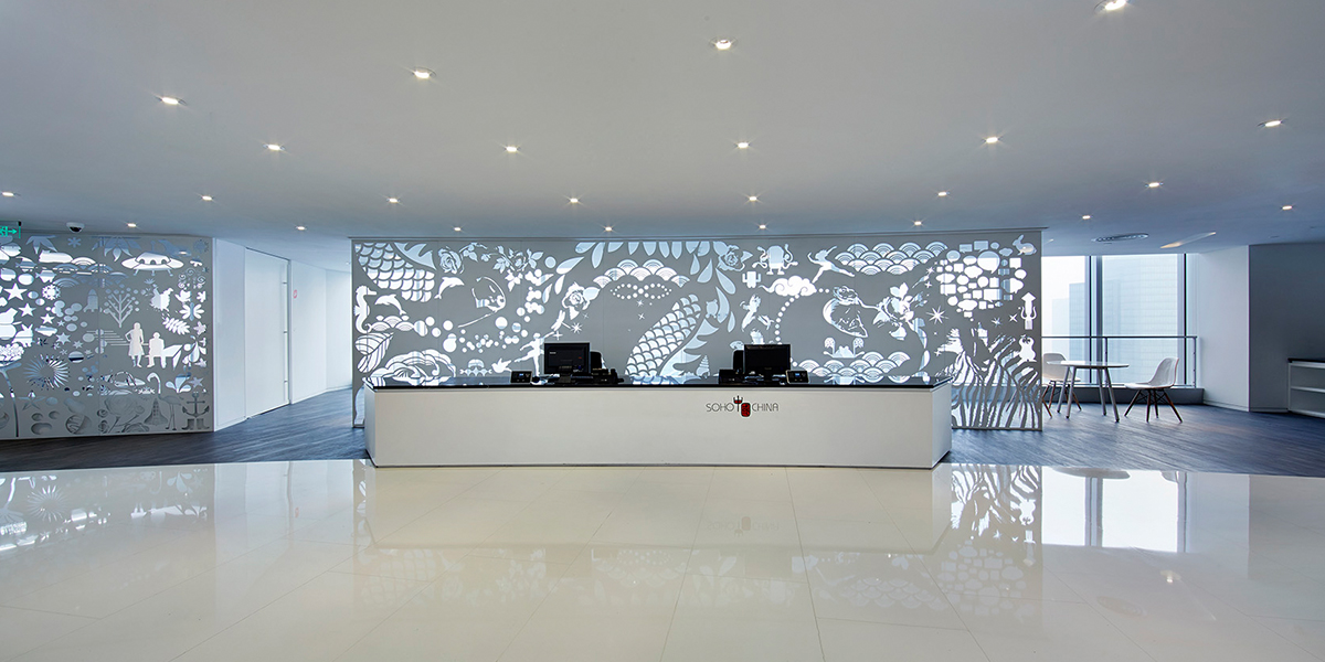 The SOHO Donghai Office was used as SOHO China’s Shanghai office. We developed the interior design in relation to their corporate image and their company’s character. We used a lot of white with some darker tones to represent both the SOHO style and, symbolically, a new and successful beginning.