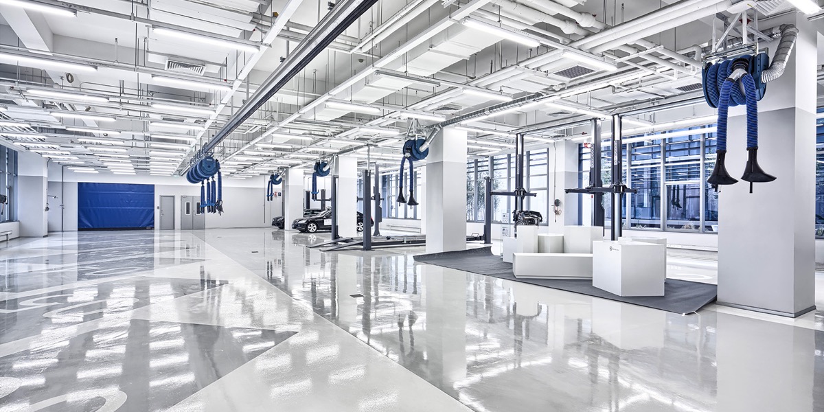 The Design Centre is split into two levels. The upper floor is dedicated to digital work, the ground floor to the model making workshop. Milling machines within are able to produce three 1:1 scale car models simultaneously. All areas are connected using state-of-the-art technology so that designs can be developed digitally and physically in parallel. Other services and areas designed by anySCALE included 7000 square meters of office space, a 1300 square meter workshop, an internal courtyard garden for events and displaying new car models and basement parking.