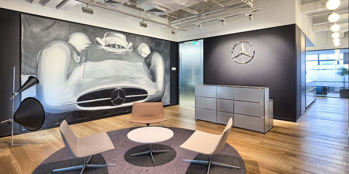 梅赛德斯-奔驰高级设计中心的设计焦点在于为空间的多样使用者提供交流和频繁互动的媒介。空间采用了小村落的想法,让不同的群体可以经常性的互动,考虑到使用者工作的敏感性,设计层面上也保证了绝对严格的内部交流。