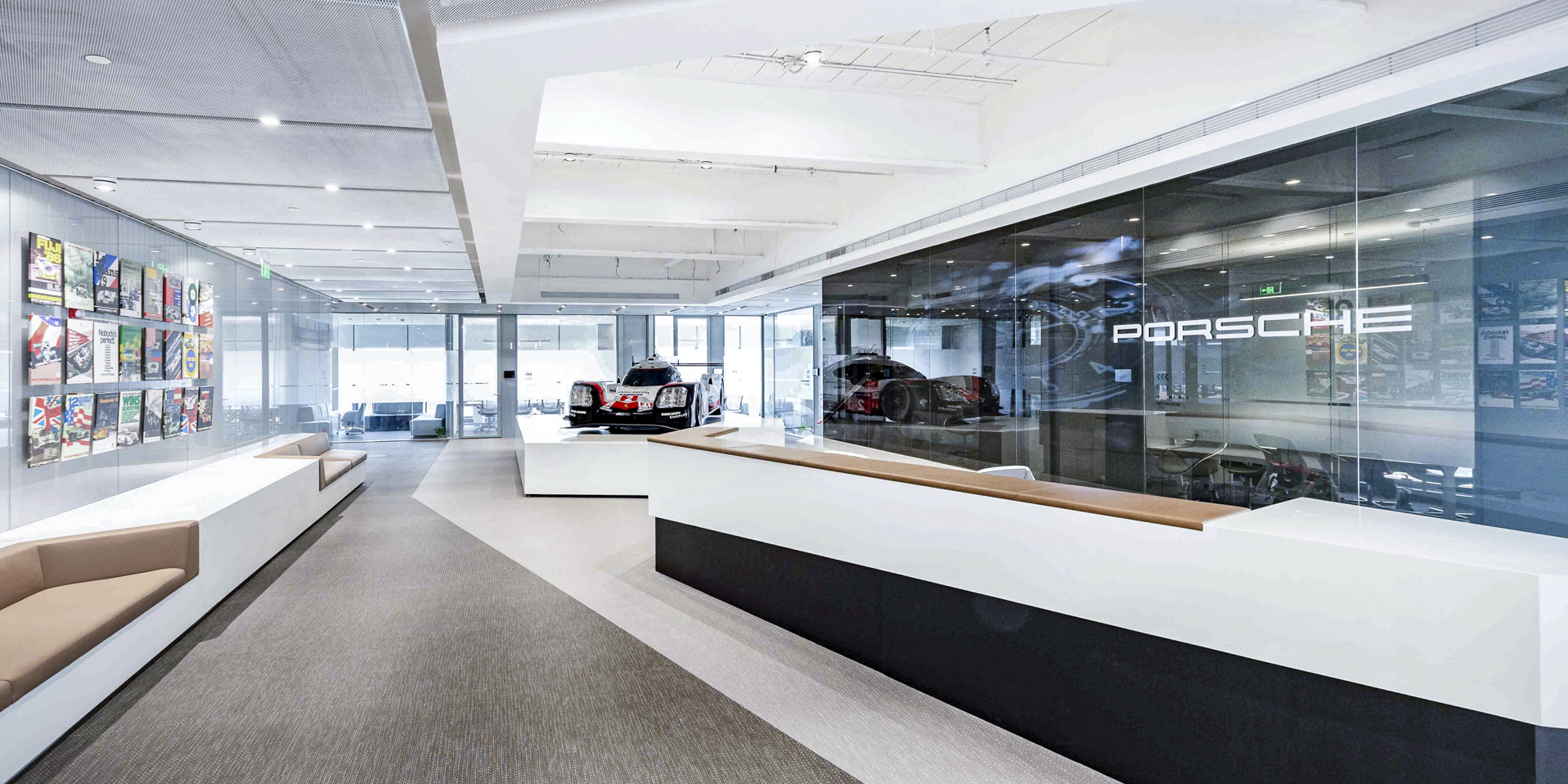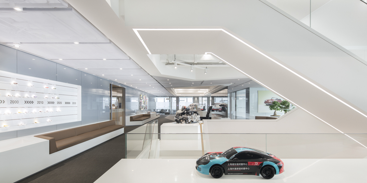 German sports car manufacturer Porsche tasked anySCALE with the challenge of designing their new China headquarters based in Shanghai at the Lu Jia Zui Financial Plaza. For this project, it was essential that a theme of speed and passion speaks boldly through the design which embraced the heritage of Porsche as a company.