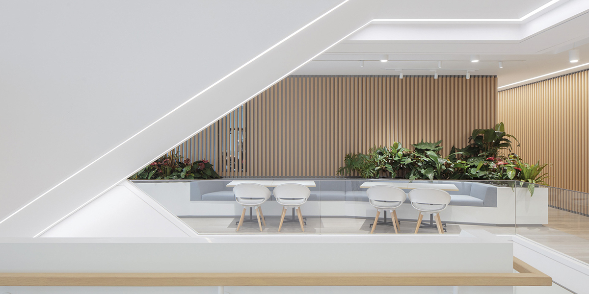 连接楼层之间的楼梯也是空间内极为重要的设计元素,不仅在其造型上凸显了保时捷品牌速度与激情的两大特色,通过流畅的折线形设计直接了当的点明主题,也在功能及实用性上提供了员工与员工之间日常办公相会的聚集地,为增进员工之间的相互沟通、提升团队协作交流等,均起到了促进作用。